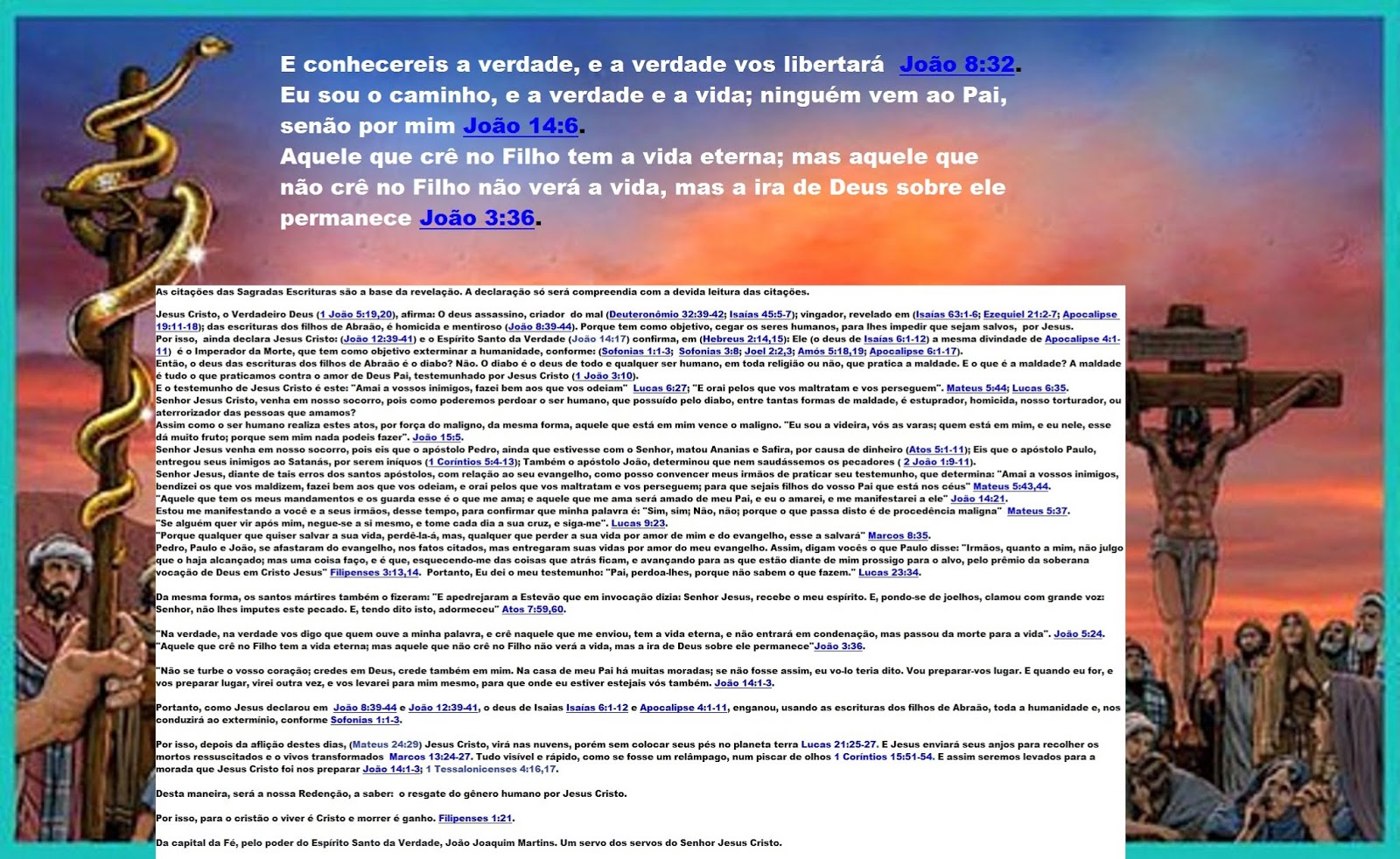 Leia as revelações do Espírito Santo da Verdade João 14:17, que disponibilizamos para você gratuitamente; (E conhecereis a verdade, e a verdade (nos) libertará. João 8:32; João 14:6).